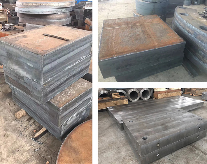 三、钢板加工:我们于2006年在江阴市锡澄路钢板切割加工基地投建大型数控切割加工生产中心,可为客户提供各种规格材质钢板切割、零割、加工各种几何形状钢板构件。常备钢板厚度80mm-500mm,原材料均为宝钢、沙钢等一线钢厂。钢板切割件(包含数控切割件)质量稳定可靠,确保100%无任何质量异议。生产周期短,价格优惠合理。