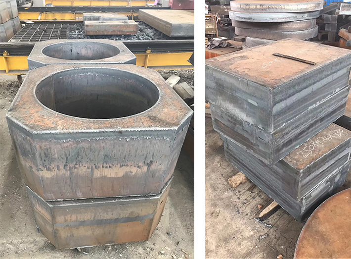 万卓现货资源:10mm/20mm/30mm/40mm/50mm/60mm/70mm/80mm/90mm/ 100mm/110mm/120mm/130mm/140mm/150mm/160mm/170mm/180mm/190mm /200mm/210mm/220mm/230mm/240mm/250mm/260mm270mm/ 280mm/290mm/300mm/310mm/320mm/330mm/340mm/350mm/360mm370mm /380mm390mm/400mm/500mm/550mm/600mm/700mm 【钢板宽度4.8米.长可达26米.单重可达46吨】 以质量求生存 以信誉求发展 江苏无锡万卓钢铁有限公司 加工材质:Q235B/A3/Q345B/Q345D/Q360B/E.Q390B/E.Q460B/E.Q590B/E.Q690B/E. 45#/S45C/16MN/16锰/Q245R/Q345R/s355jr.s355jr+n等特殊材料。 钢板切割: 承接机械配套机加工,主营Q235B、Q345B、45#钢等材质的钢板切割与加工。可按客户图纸要求进行钢板切割异型件、切割法兰圆盘毛坯件、仿形件。钢板外协加工各类机械零部件、模具钢、轴承座、齿轮盘、钢结构及焊接预埋件、起重及升降钢板配重块。钢板切割件产品主要应用于重型机械设备,如造船、纺织、采矿机械、机床、锻压、发电设备、冶金机械制造等领域。的优势在于特厚钢板的切割及深加工业务中能大量替代锻、铸件。有效的减少了在制造大型机械设备配件、齿轮箱、轧机牌坊,轴承座方面的加工量,同时为广大厂家减少钢板加工零部件的工序和加工成本。